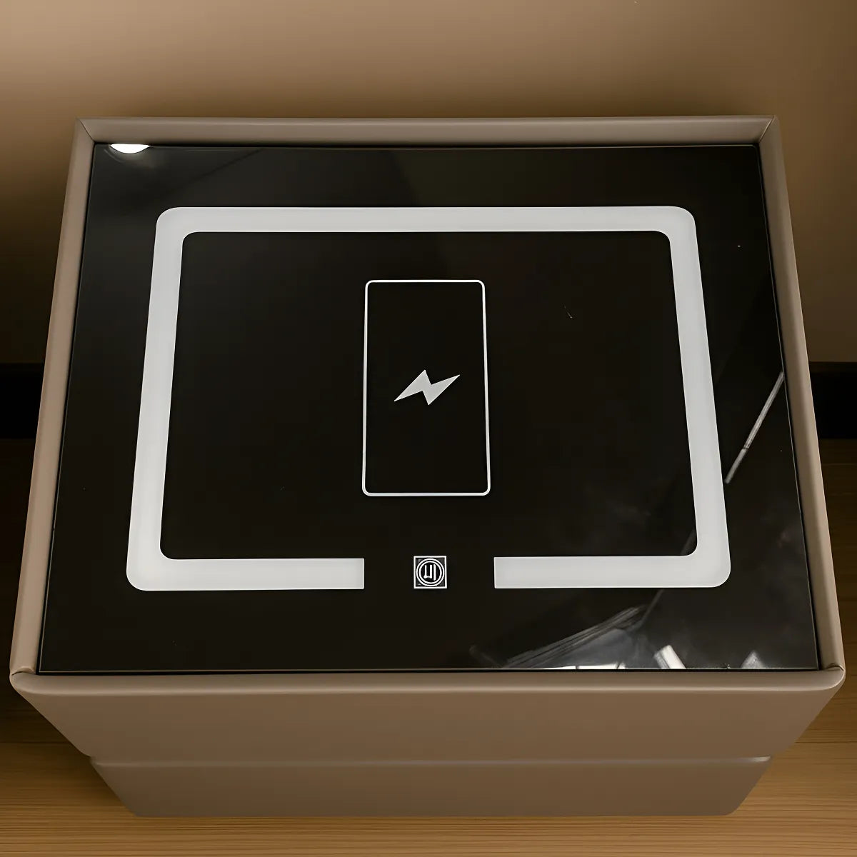 Mesa de Noche Inteligente – Diseño Moderno con Carga Inalámbrica, Parlante y Luces LED y Bloqueo con Pin